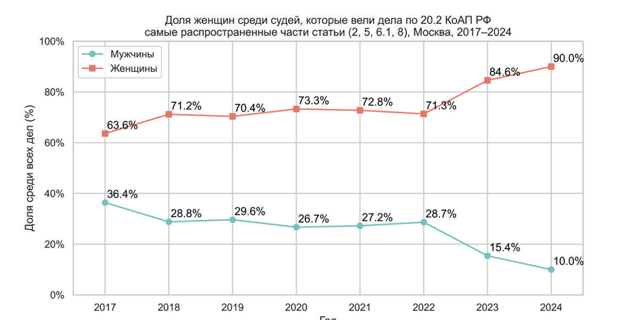 Влияние гендера обвиняемых и судей на исход дел по протестам: эмпирическое исследование судебных решений по делам по ст. 20.2 КоАП РФ в Москве