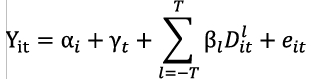 Суть этого дизайна сводится к тому, чтобы использовать модель с фиксированными эффектами на время и единицы анализа для получения оценки результата экспериментального воздействия. К этому добавляется набор переменных, которые указывают на разницу во времени между текущим периодом, за которой представлено измерение зависимой переменной для определенной единицы анализа, и периодом, в котором эта единица получила экспериментальное воздействие. Каждая из этих переменных является дамми-переменной. При этом мы можем использовать наблюдения не только из двух периодов, но также и из всего множества периодов, как предшествующих экспериментальному воздействию, так и следующих за ним. Это позволяет получить оценку экспериментального воздействия в любой период времени, а также нивелировать проблему, связанную с получением этого воздействия в разные периоды времени. Более того, с помощью этой спецификации становится возможным протестировать предпосылку о параллельных трендах, при этом не потребуется дополнительно оценивать какие-либо модели, тест органично встроен в спецификацию.